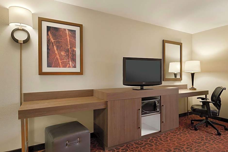 Any corresponding photo may not reflect the specific accessible room type or room feature. This hearing accessible, nonsmoking room features one king sized bed(s). The room also has a visual alarm and notification devices for the doorbell or door knock and incoming phone calls. The room features our luxurious Clean and Fresh Hampton Bed, comfortable sofabed, microwave, refrigerator, a HDTV, and easy to operate alarm clock/radio. In the bath you will enjoy a WaterPik shower head and curved shower rod. The free high speed internet access will help you stay connected while on the road. If you prefer not to work at the desk, you can use the convenient lapdesk instead. You'll also enjoy the convenience of having a coffee maker with tea service and iron/ironing board in your room.